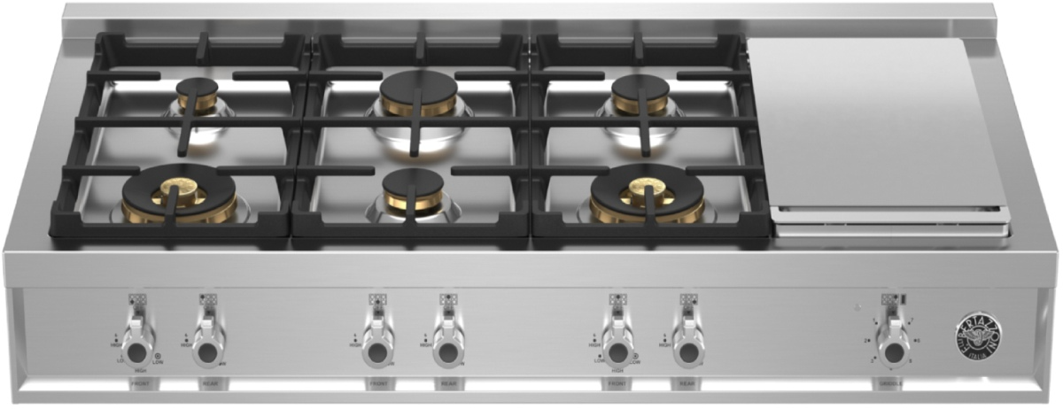 The combination of 6 Monobloc brass burners and the electric griddle, plus cast iron contour grates let you cook like a professional. The grates are designed for maximum space to fit pots and pans of different sizes with ease. The extra powerful 19,000 BTU power burners boil water faster than any burner in their class. Boil pasta, sear meat or stir fry with a wok on the 2 power burners with dual ring flame; or delicately melt chocolate or warm cream on the simmer burner.