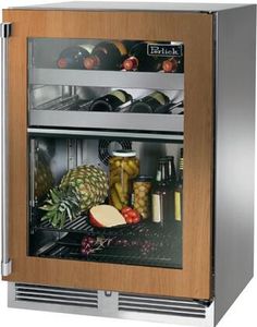 Perlick's 24" Signature Series Refrigerator/Wine Reserve features two independently controlled temperature zones, resulting in the industry exclusive ability to store food and wine in separate temperatures. Units come equipped with Perlick’s best-in-class front-vented RapidCool forced-air refrigeration system, and are built to the same standards of the commercial industry. *CUSTOM PANEL & HANDLE SOLD SEPARATELY*Read More