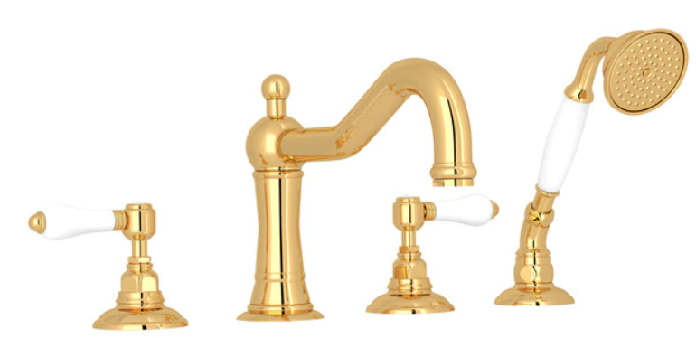 Rohl® Acqui Italian Brass 4-Hole Deck Mount Column Spout Tub Filler with Handshower
