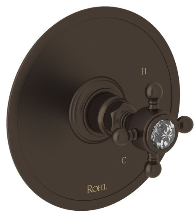 ROHL Tuscan Brass Finish can be best defined as a smooth, warm chocolate hue. It is subdued and unobtrusive when placed in with other textures and colors. It conveys the experience of luxury through a distinctively soft, warm and genuine feel in comparison to other products made with synthetic coatings. This finish is a "living finish" in that the character of the finish will develop and lighten over time depending on its use and maintenance. Therefore, our standard limited lifetime warranty does not apply to this finish. To maintain this finish, it is recommended to use mild soap and water. Do not scrub or wipe the surface or use cleansers that contain abrasive or corrosive elements like ammonia. Do not rub or buff.