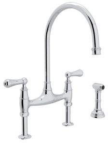 Rohl® Perrin & Rowe® Bridge Kitchen Faucet-Polished Chrome with sidespray and metal lever handlesRead More