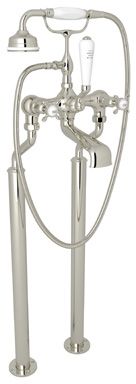 Rohl® Perrin & Rowe® Edwardian Exposed Floor Mount Tub Filler-Polished Nickel with handshower and cross handlesRead More