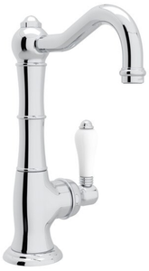 Rohl® Polished Chrome Cinquanta Single Hole Column Spout Kitchen Faucet with White Porcelain Lever Handle made of brass constructionRead More