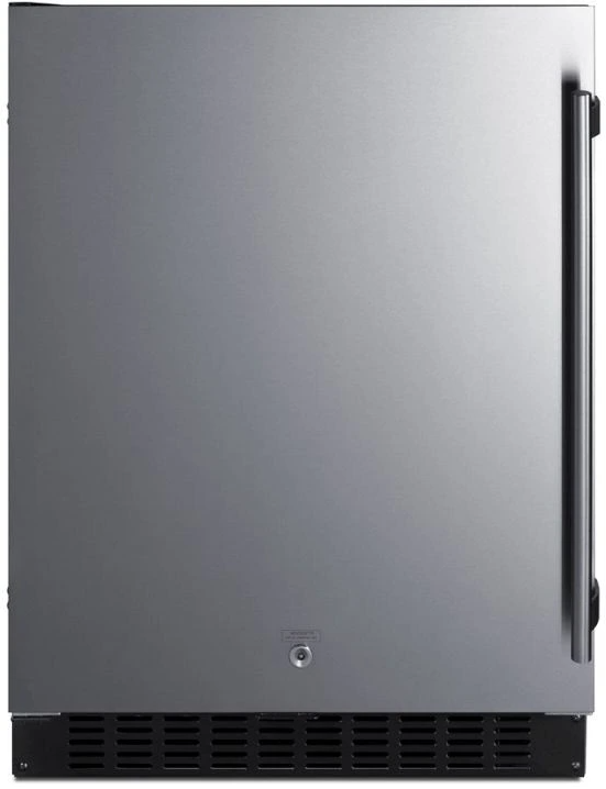 The front-breathing system allows built-in installation, while the fully finished black cabinet also allows freestanding use. This unit has a sealed rear and right angle cord for a better fit. The stainless steel wrapped door is user-reversible and includes a front lock and pro style handle.