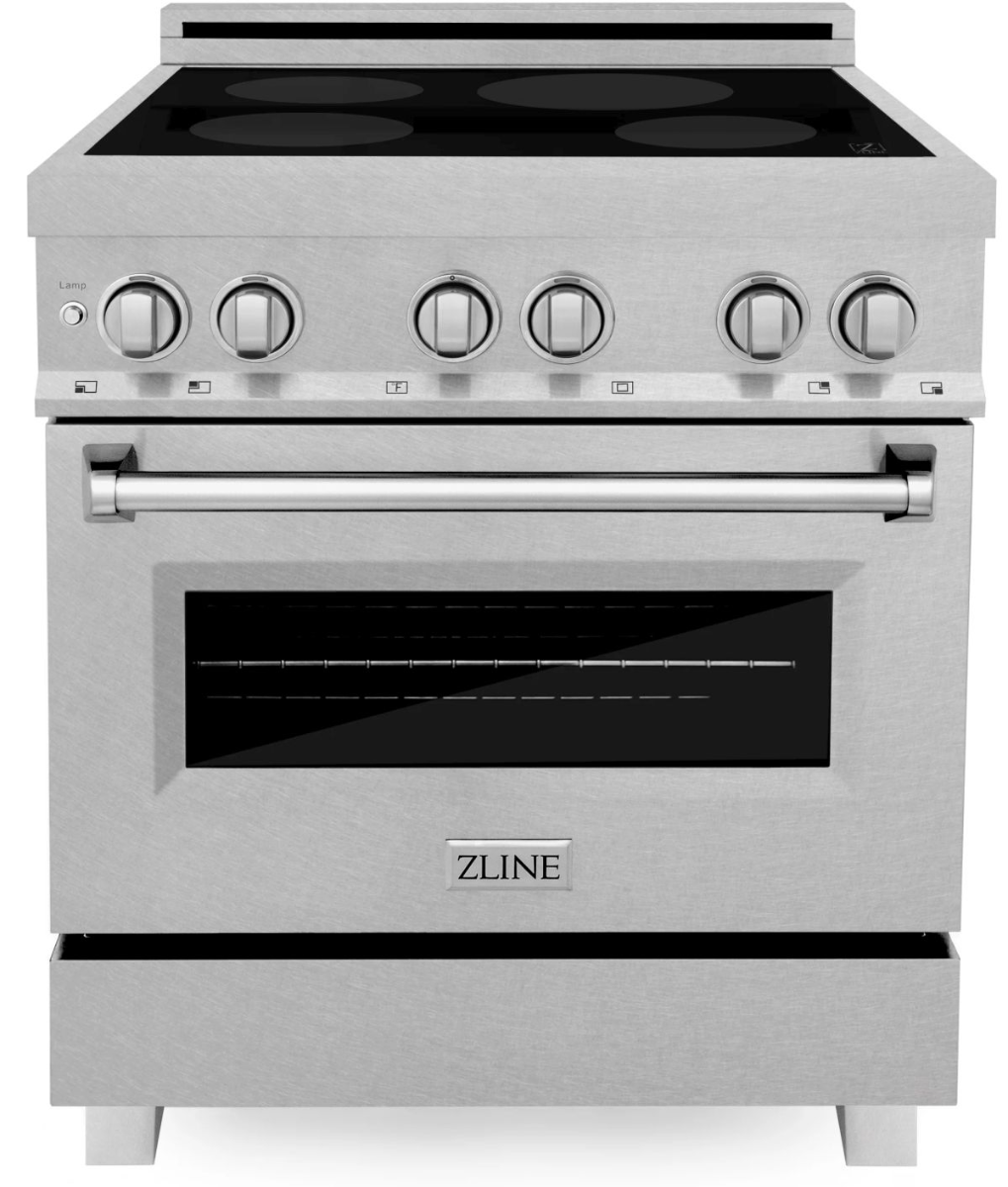 Luxury isn't meant to be desired - it's meant to be attainable. Designed in Lake Tahoe, USA, the ZLINE 30" 4.0 cu. ft. Induction Range with a 4 Element Stove and Electric Oven in Fingerprint Resistant Satin Stainless Steel (RAINDS-SN-30) provides a professional culinary experience by pairing unmatched performance with timeless style. Achieve ZLINE Attainable Luxury excellence with innovative features designed to enhance your kitchen's capability.Read More