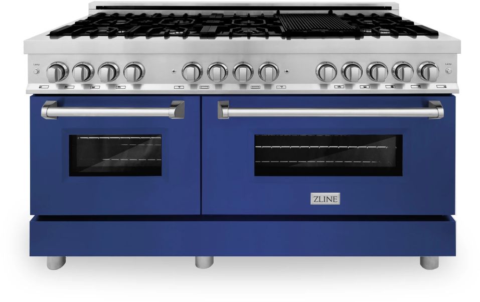 Luxury isn't meant to be desired - it's meant to be attainable. Designed in Lake Tahoe, USA, the ZLINE 60" 7.4 cu. ft. Dual Fuel Range with Gas Stove and Electric Oven in Stainless Steel and Blue Gloss Door (RA-BG-60) provides a professional culinary experience by pairing unmatched performance with timeless style. Achieve ZLINE Attainable Luxury® excellence with innovative features designed to enhance your kitchen's capability.Read More